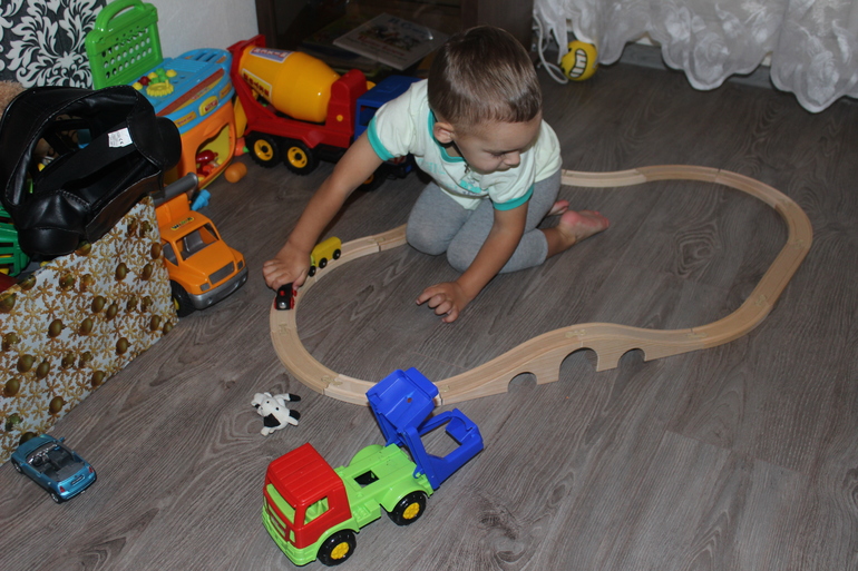 -Очень хорошо играется сам.Играет с игрушками,выдумывает всякие историй,придумает игры. Берет игрушечного котика"Котик иди к нам.Котик,смотри это тигренок. и ты будешь с нами играть". "Трактор пойдем пописаем на горшок" и т.д.