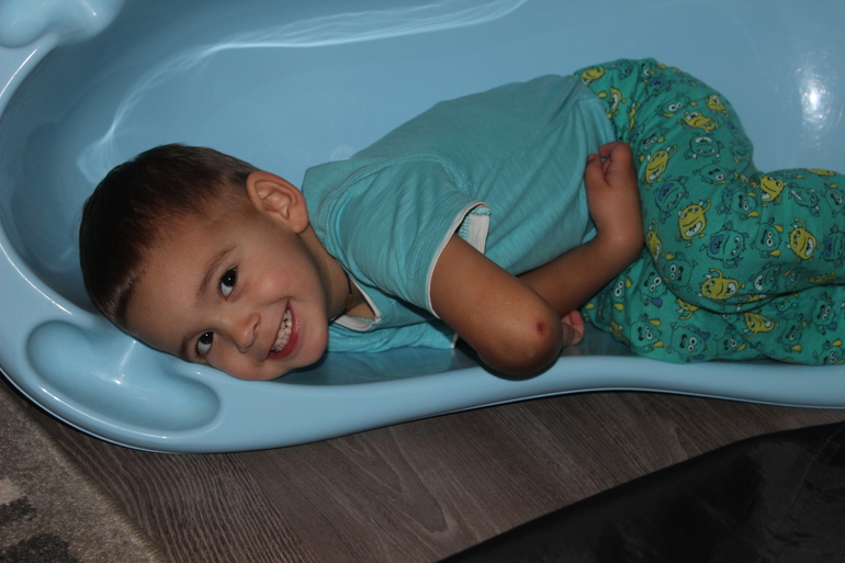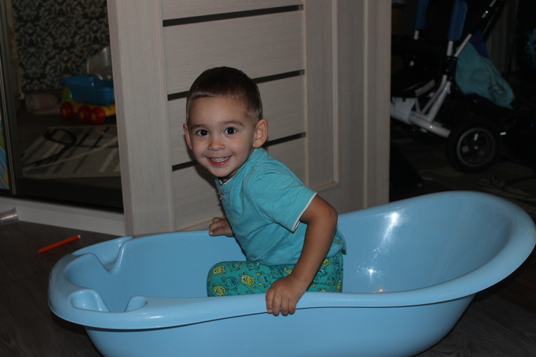 Вот полюбил эту ванночку.Каждый день волочет в комнату.Это у него кораблик))