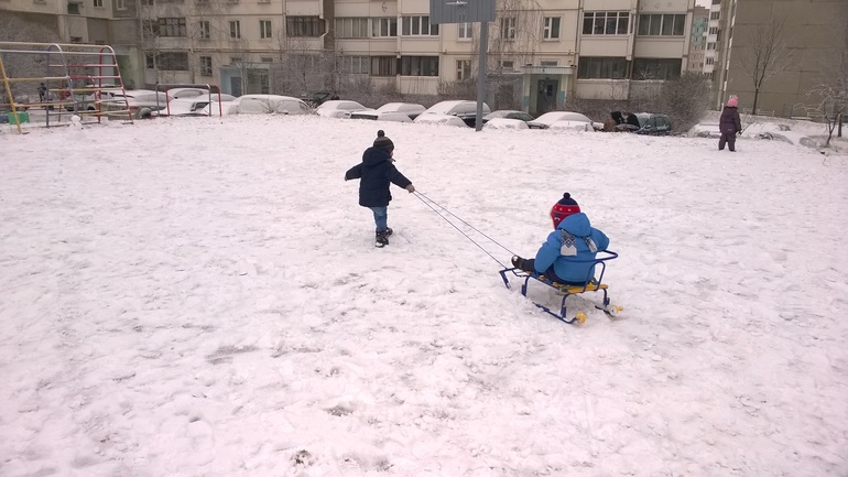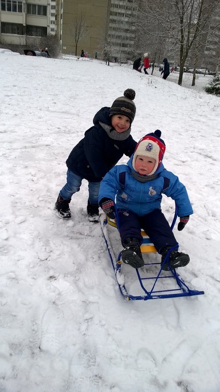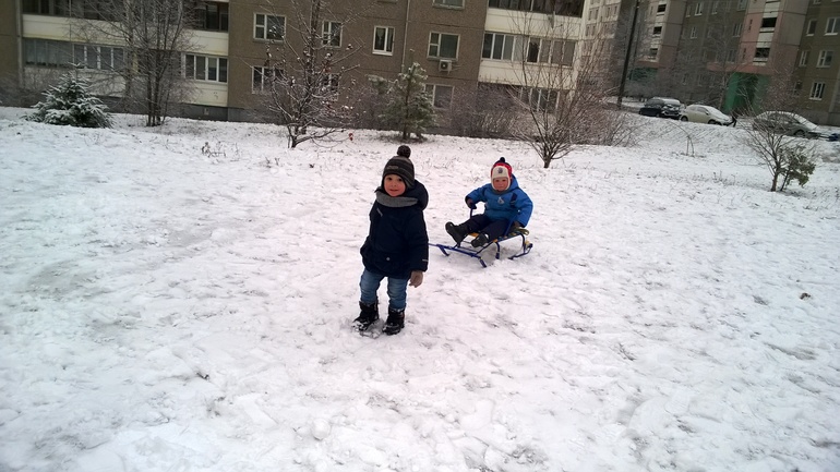 да,снега не хватает. Мы свои санки на лестничной площадке оставили,так как выходим,то Никита сразу просит покататься))