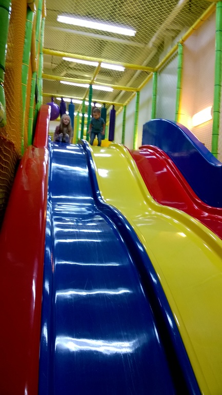 Неудачный выбрали центр.Нашим деткам было скучновато.и все из-за того,что на второй этаж лабиринта они не могли залезть(нужен большой рост).Так дети наши корабклись по горке))