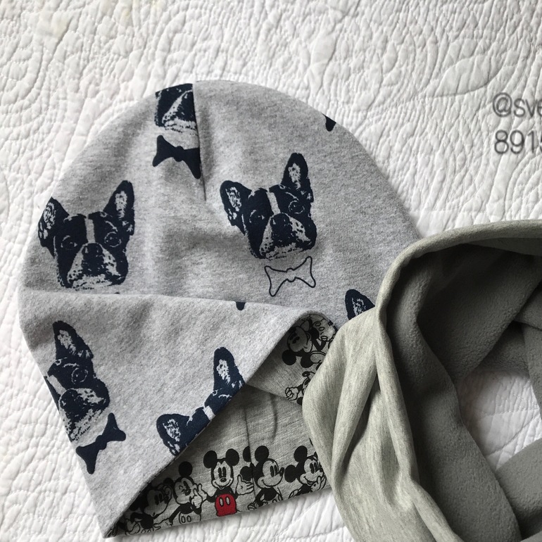 Двухсторонняя шапочка и снуд на флисе, выполнен на заказ.