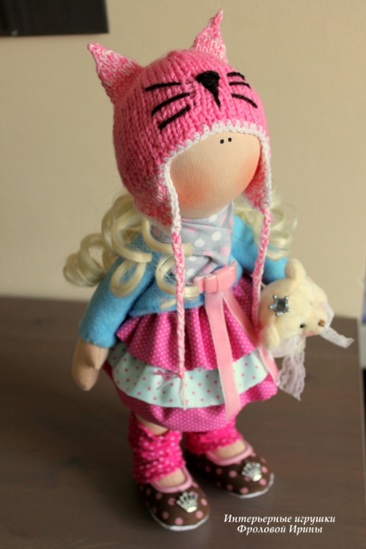 6. Девочка-кошечка, ост куколки от пяток до кончиков ушек на шапке - 41 см.