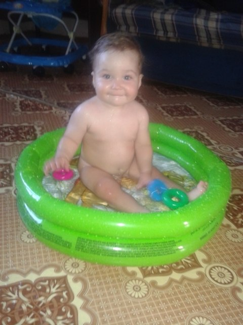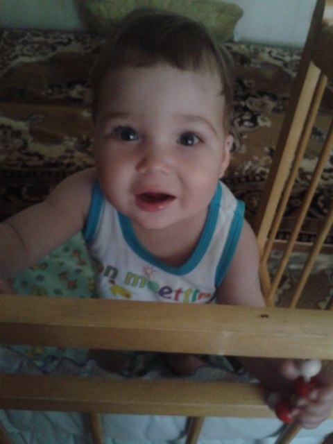 ползает,встает за опору,ходит за опору хорошо, ходит за одну ручку,сам стоит и сам делает несколько шажков)) когда получается самому пройти немного-аж визжит от радости))) говорит мама,айда,дай. знает где папа,где бабуля,киса. кушает почти все уже с общего стола. но ночью по прежнему смесь раза 3. иногда и раз 5 бывает за ночь ест. любит гулять и плескаться в водичке. если покажешь ему качельки или тем более начнешь катать его-все,домой не загонишь. дома тоже на качелях катается долго,а если снимешь-психует и орет сразу. если ему что-то не по душе-дерется.походу не только непоседа он у нас,но еще и драчун. в общем хулиган еще тот))) весь в синяках и ссадинах,а ведь сам еще не ходит...что будет даааальшееее))))