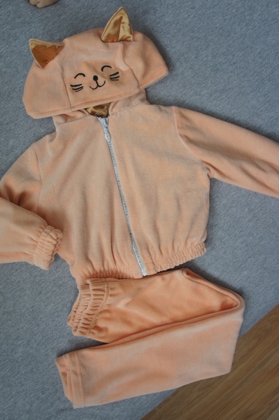 2. костюм котёнок цвета персик на 86-92 800р мягонький плюш хлопок молния стразы, капюшое мордочка котёнка![]()