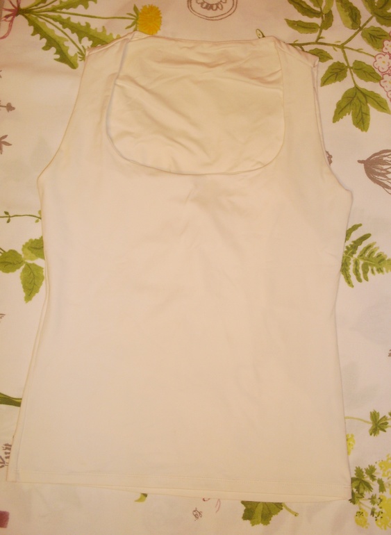 Топ, р-р 44, двойной эластан, приятный на ощупь, белый с оттенком бежевого. Глубокое декольте. Может один раз одевала. 200р.