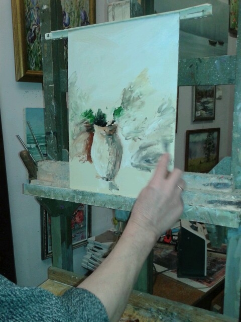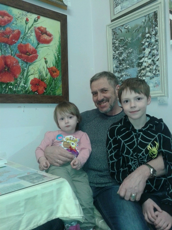....мастерской нашего друга и отличнейшего художника Владимира Хутько. В этой мастерской он недавно, мы в ней еще не были, и вот посетили....Понравилось нам очень, Егорка получил очередной мастер класс, попили чай, поговорили. Лерочка тоже рисовала, но скромно, она была в таком месте первый раз. Ей особо понравились картины, очень внимательно рассматривала, но руками не трогала, как буд-то понимает, что это произведение искусства)))) Дальше фото и конечно картина которая получилась совместным трудом)))) Фото с телефона, не яркие((((