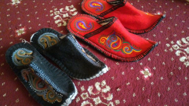 тапочки из натурального войлока с казахскими арнаментами