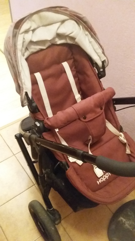 Коляска-трансформер в отличном состоянии (люлька+прогулка). В прогулке: пятиточечные ремни безопасности, бампер. Капюшон, подставка под ножки. Трехколесная, колеса одним движением отсоединяются от основного блока и легко складываются. Ножной тормоз. Есть накидка на ножки, дождевик. В люльке: окошко-сеточка. С'емный чехол на матрасик. Люльку можно переносить за ручку. Капюшон откидывается назад.