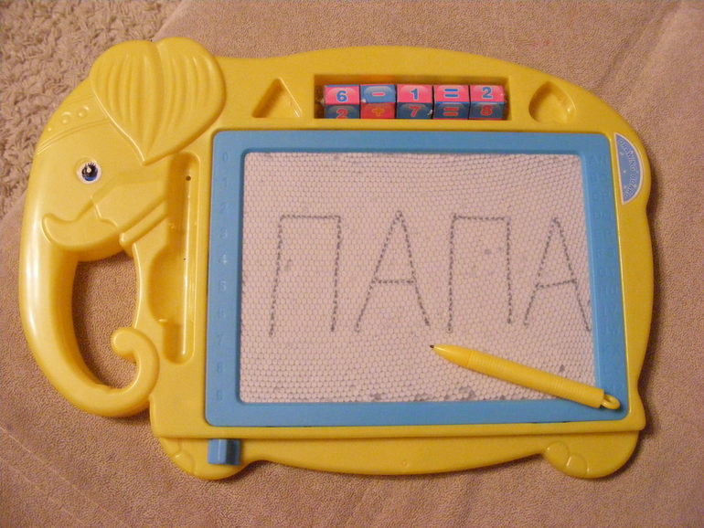 Стал слова писать и просить сына повторить слог. Начал с "Папа", естественно ))) "Это П, это А. Что получилось?" Сын - ПА. "И здесь еще П А. Что получилось?" Сын кричит ПАПА! И смеется, и радуется своим достижениям. До чего приятно наблюдать было такую картину!