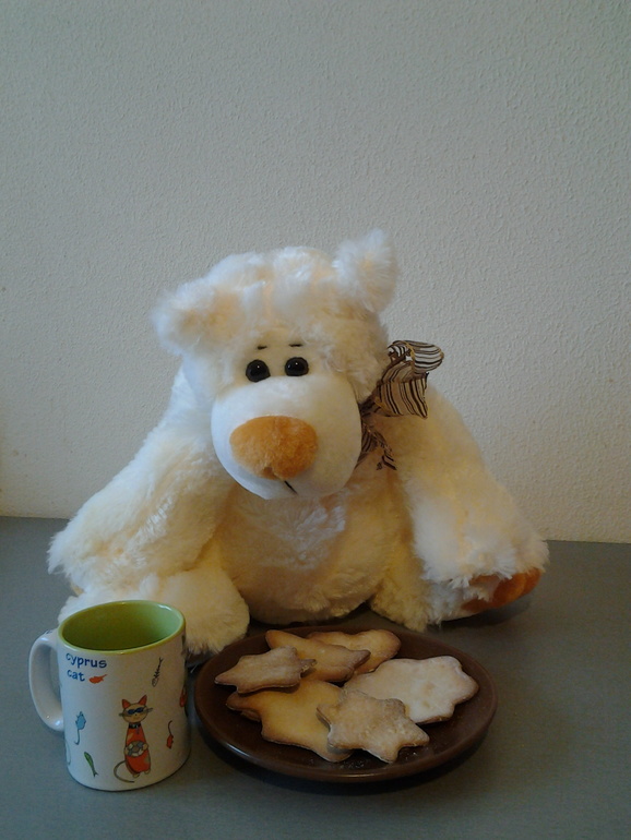 Было печенье (тесто от торта-медовика). Сын вырезал печеньки формочками и помогал катать скалку. За обедом половину печенья съел сам. И еще бы съел, но я предложила поделиться с папой - это не обсуждается, тарелка с лакомством тут же была отложена для папы.