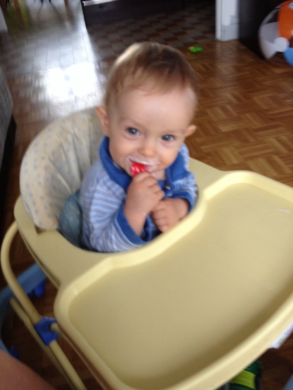 Теперь появилось Я ШАМ )))) Надо ему отдельную ложку и парень сам кушает йогурт ( зрелище не для чистюль и слабонервных хахаха ))))