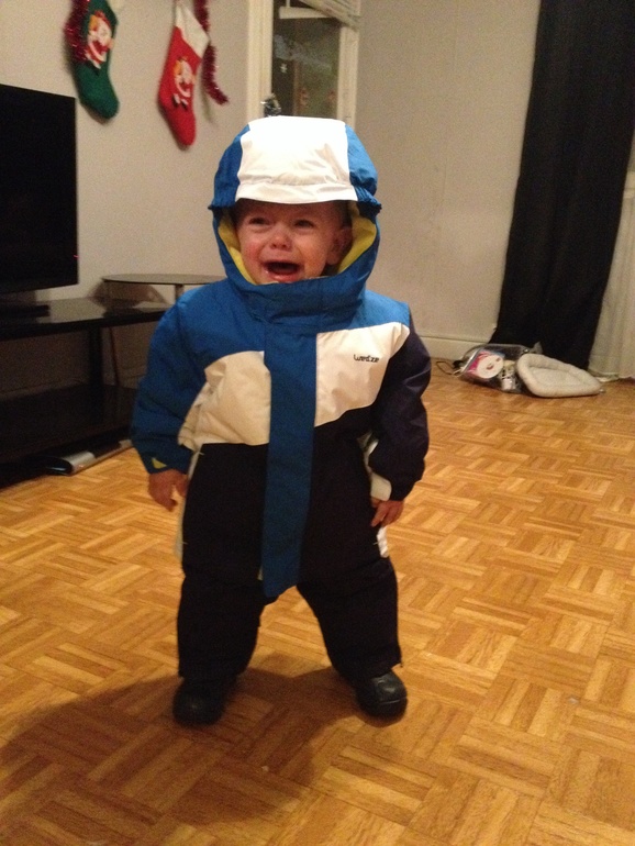 Это мы приехали с магазинов и мальчик ждал сисю и ужин. А мать решила в начале примерку устроить. Вот он обиженный и ревет стоит ))))))))))