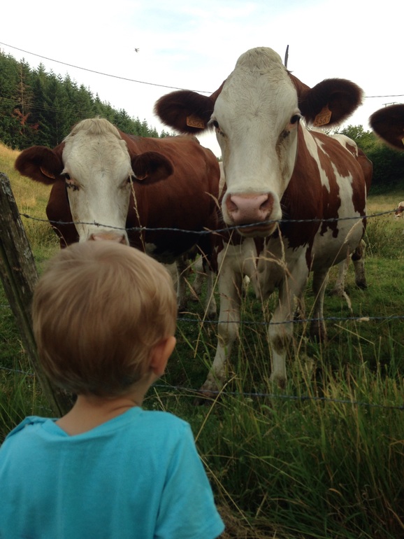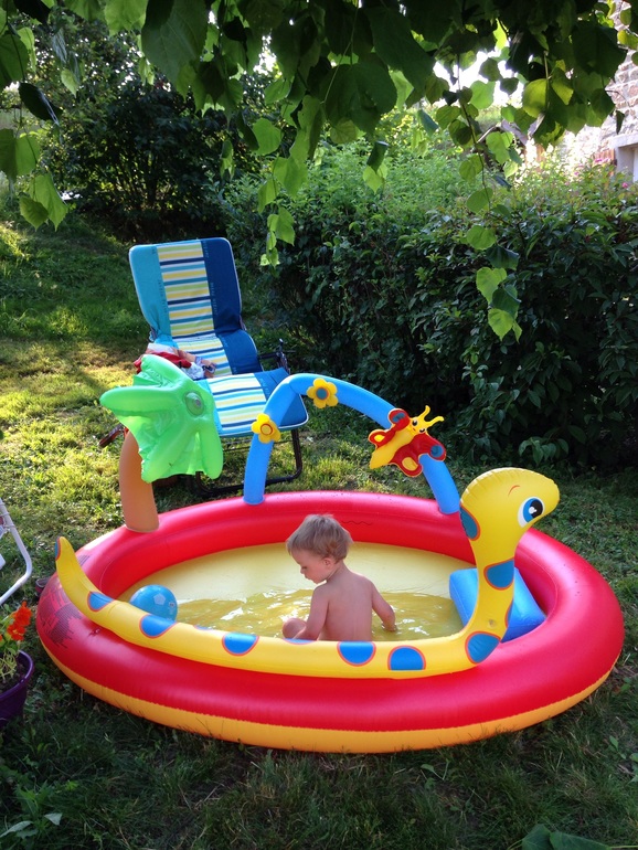 У бабушки мы спасались от жары в доме, во дворе поставили Леше бассейн, но после моря он не особо проявляет интерес к воде ))) По вечерам и до обеда мы с ним прыгали , скакали по просторам))) Видели коров!)))) Ой это нечто ))) Нам, горожанам, коровы это как тигры-экзотика)))))