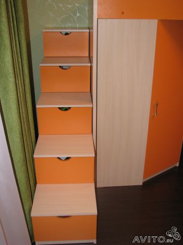 Продается комплекс мебели для детской комнаты. В комплекте каркас кровати, стол письменный, тумбочка, платяной шкаф, лестница на второй ярус со встроенной системой хранения. состояние хорошее. Цена 11 000 рублей.