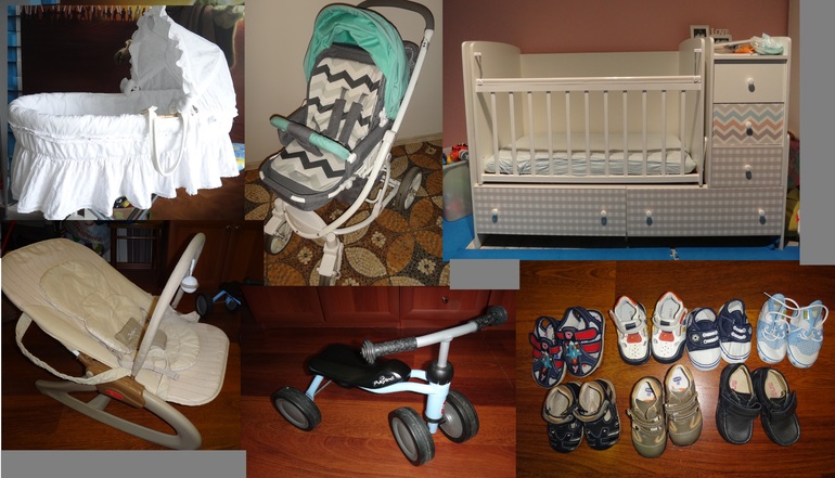 Коляска, шезлонг, комбезы демисезонные 62 см, обувь на первые шаги, мобиль, люлька, кроватка, беговел pukylino и по мелочи (все под катом)