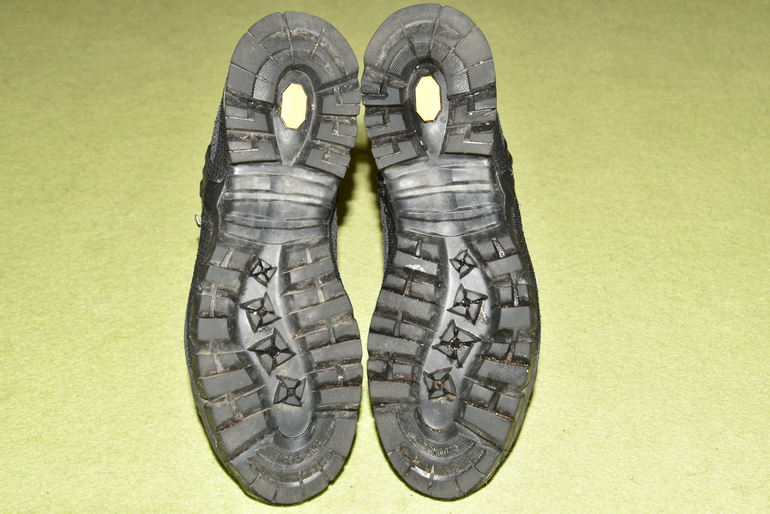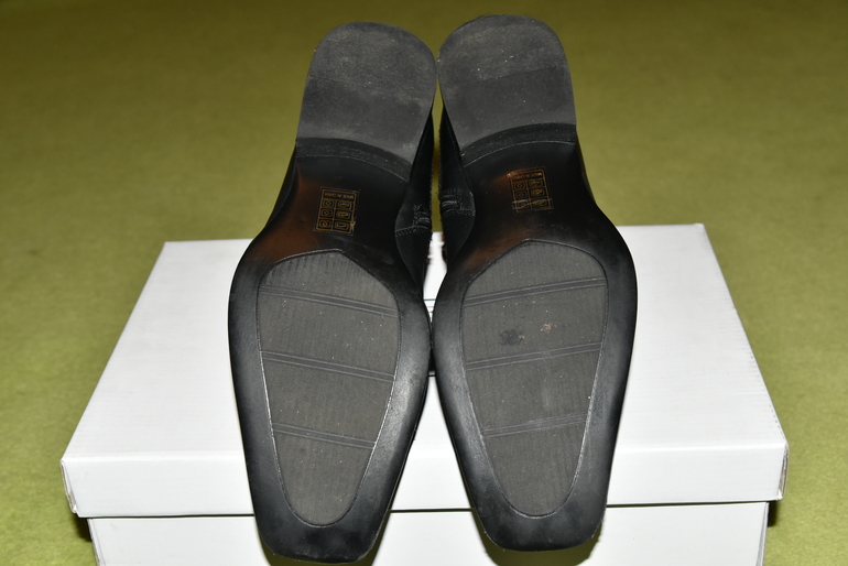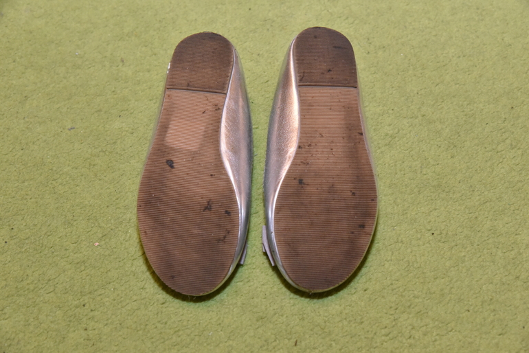 Под пяткой левой туфли потеряна плоская круглая вклейка (см. фото).