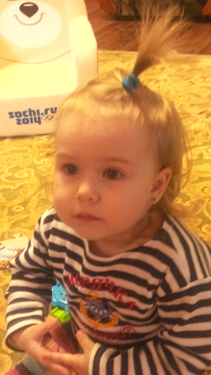 а мы с короткой стрижкой) я подстригла в мае, выравняла ей волосы..но сейчас густые растут, но пока мы без хвостиков)))