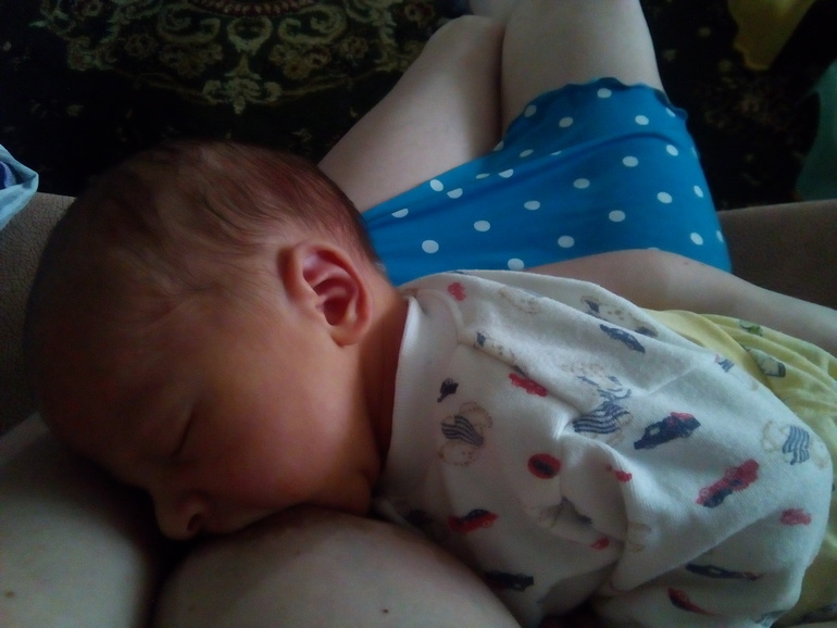 Была сегодня педиатр. Поглядела на Ярика и сказала, что ребенок хороший, рефлексы в норме, но с билирубином и весом нужно что-то делать. Билирубин выводим полисорбом и урсофальком. Вес контролируем с помощью ежедневного взвешивания (взять в поликлинике напрокат детские весы). Ну и все, в принципе))) Ловите семидневного Яра на маминой груди))