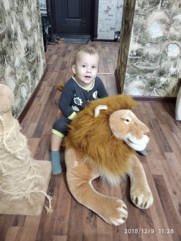 Спим днём один раз, засыпает на груди. Зимой гулять не ходим((( Ярика хватает на 10 минут, потом ложится в снег или просится на руки. Я долго таскать на руках его не могу, поэтому идём домой. То есть дольше одеваемся, чем гуляем. Санок-колясок у нас нет, т.к.оба ребенка "слинговые", но моя спина уже не выдерживает веса сына. Весной купим прогулочную коляску.