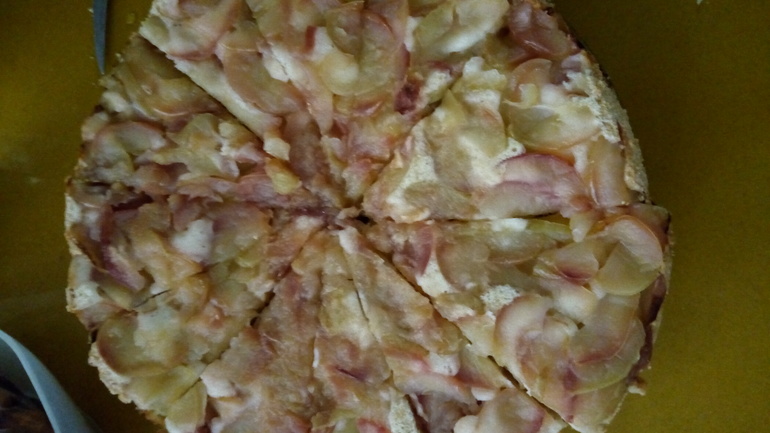Набрали яблок на районе и спекли пирог. К слову лежат под деревом никто их не трогает. Мы видимо самые годные)
