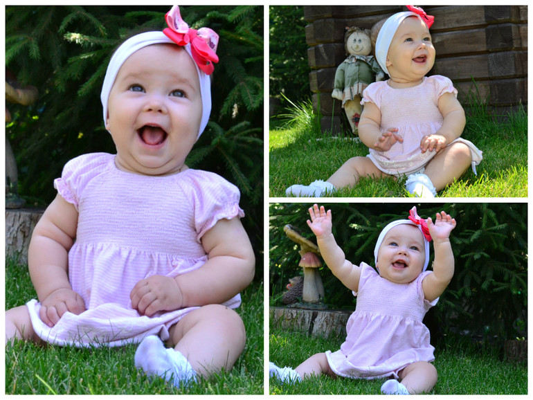 с наступающими вас 7ми месяцами)))Боже,какая она милашка)чудо чудное)а юбка розовая,ваще отпад))))растите и берегите головушку,эт самое главное)))мама,что вам за туфельки пришли?уже что 19размер ей впору?