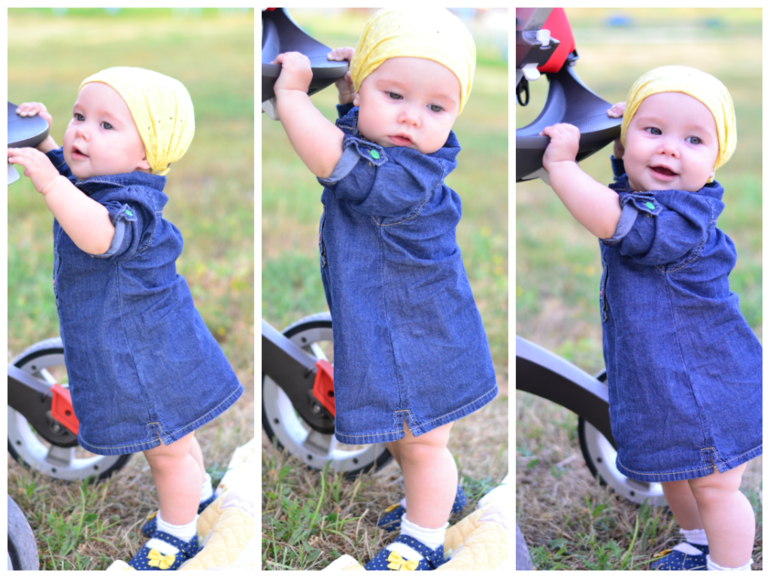 Время летит...Ника растет.На лице уже успели покрасоваться три здоровенных синяка!Падает все время,ибо с равновесием еще очень тяжко,а очень хочется ходить,ну или стоять без ручек на крайняк!))))))Хочется обвязать по кругу подушкой,ибо жалко свое сокровище невозможно!Пришли первые туфли,настоящиииее)Это очень озадачило меняя,потому чтопоняла,что ребенок мой до них дорос,хотя недавно забирала 3 кг из роддома)Мы продолжаем самозабвенно жевать кабачки и цветную капусту,брокколи тоже жуем,но уже не так самозабвенно.Морковь.Ей не нравится морковь!Чуднаая.Мне лично нравится,поэтому "блендерю" и ем))))"Бушки-бушки-бушки" пришли в наш дом.Самое страшное когда она начинает играть в эту наиинтеллектуальнейшую игру со своей подружкой из зеркала.))))))И ведь не унимается,несмотря на дискомфорт в районе лба)В общем это было коротко о главном,а не бред сивой кобылы))))Ну и по традиции фоточки.