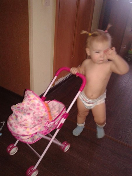 Из последнего чему научилась: залезает сама на машинку и гусеницу-качалку,на гусенице сама качается. Заметила что когда гуляем на улице без подгузника Аня терпит до дома,ну или если долго гуляем то я ее сажаю в укромных местах,но в штаны не делает делов.