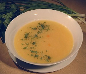 Хорошо промытый перебранный рис всыпаем в кипящую воду и варим до готовности. Затем, отбросив рис, протираем его через сито и разбавляем горячим молоком, по вкусу добавив сахар и соль, и снова ставим на огонь до вскипания. В готовый суп добавляем сливочное масло.