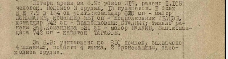 В тот день 10 гв.армия понесла большие потери, погибло 317 человек, из них отмечается большое количество командиров.