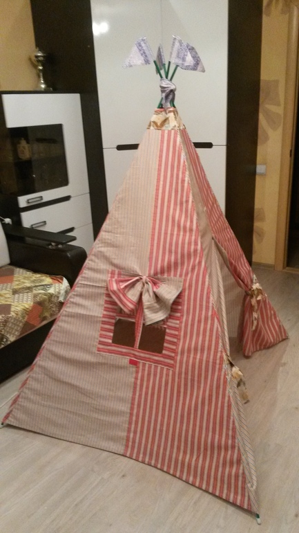 Солнечная полянка / шью для детокЭто творение тоже сшилось недавно, цена 3500 за комплект: вигвам с окошечком, шторкой и двумя кармашками для нужных) мелочей + мягкий коврик на синтепоне внутрь. Основа - 4 опоры для садовых растений, Высота опор 2 метра, размер в разложенном виде - 124*124, высота 170 см. Повторение невозможно, зато вполне реально сшить подобный домик в другой цветовой гамме, есть очень яркие и интересные ткани