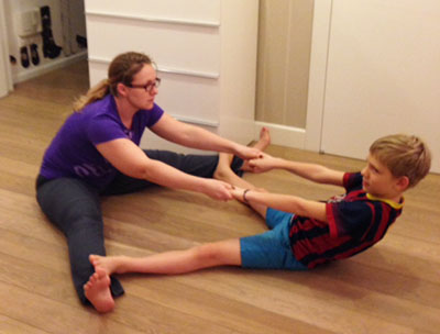 Чтобы обернуться этим животным, нужно вместе с товарищем сесть на полу, уперевшись ногами друг в друга. Затем тянуть друг друга по очереди, замерев на 5 счетов в конечной точке наклона. Повторить 10 раз.