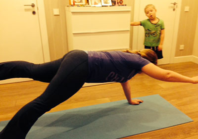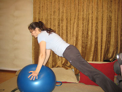 Поставьте на него ладони на расстоянии 50 см друг от друга и встаньте в упор на прямых ногах как при отжиманиях. Тело должно быть вытянуто в прямую линию. оторвите одну ногу от пола и медленно подтяните ее к груди, затем верните на место. сделайте по 10-12 повторов каждой ногой.