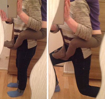 Заклинание: ноги к себе по 20 раз на каждую ногу.