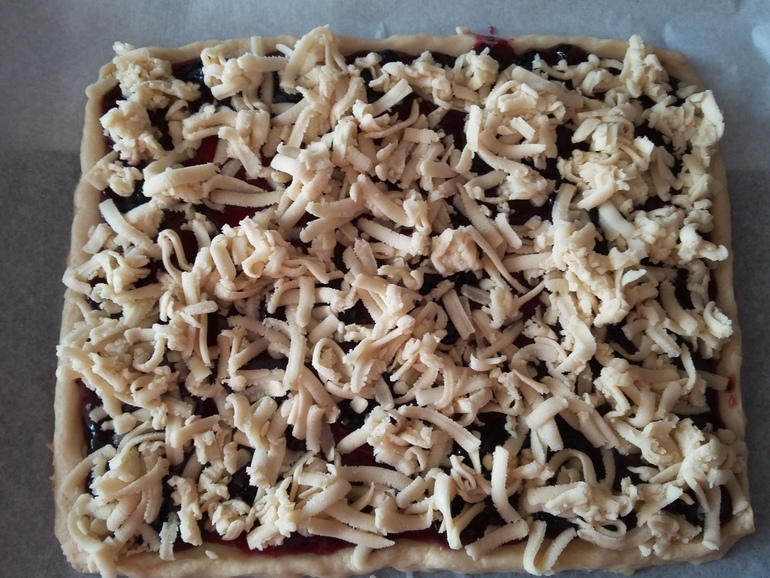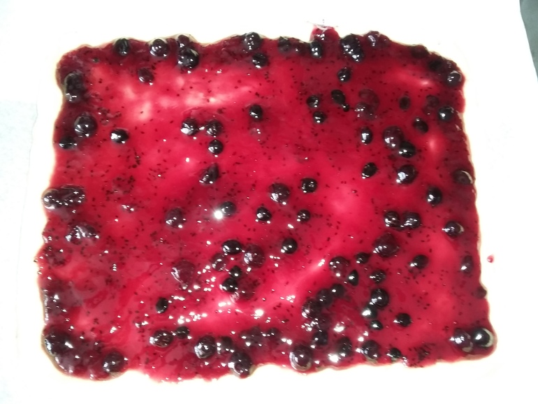 Выложить на тесто стакан густого варенья (у меня черносмородиновое):