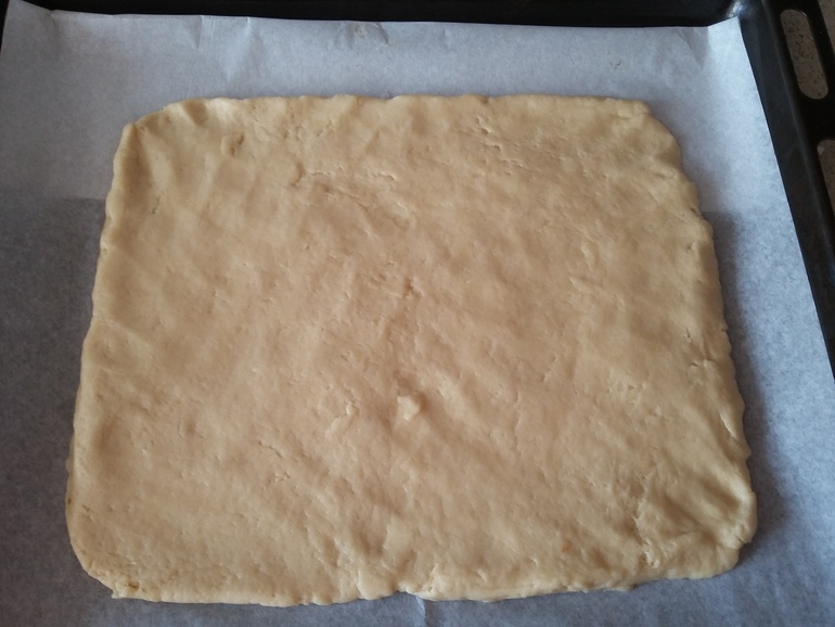 Раскатать большую часть теста толщиной в 0,5-0,7 см: