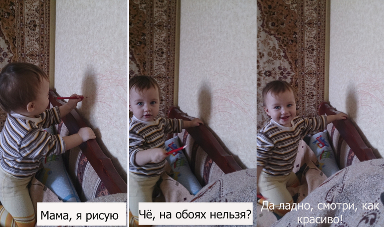 Таня, радоваться, радоваться! ты Озерову не читала? Рекомендую. Там все доходчиво объясняется на этот счет, и мне уже не жалко разрисованной квартиры. Оказывается, когда дети Не рисуют на обоях это не вполне нормально