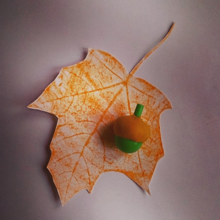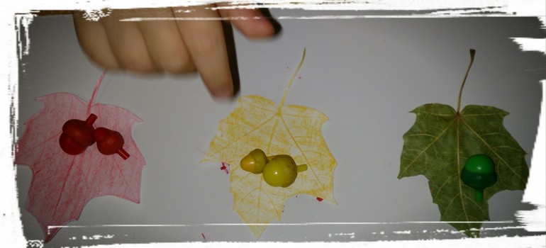 Затем, изучая цвета, делали желуди и Рисовали листики.