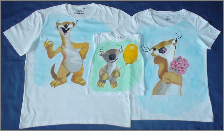 На футболках ручная роспись! Тему придумала я, попросила Катюшу изобразить - и вот что получилось :)