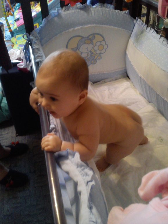 И да, стоящая Ульяна. Вместе с новой умелкой я получила вместо дочки истеричку. Орет с самого утра :( Что ж у нее так все проявляется то((( перед поворотами-орала, перед тем. как начать ползать-орала, перед четвереньками-орала....встала-и орет...ааааааа