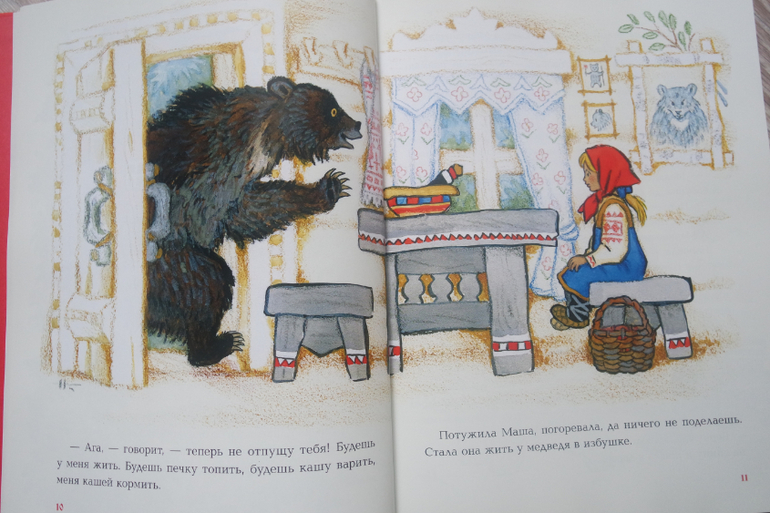 Русские народные сказки идут тяжело, читаем только маленькие и наш любимый сборник с рисунками Рачева.