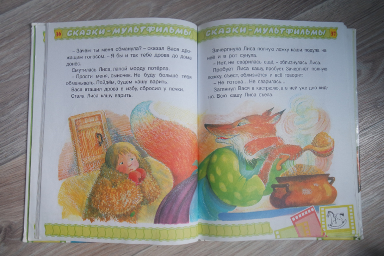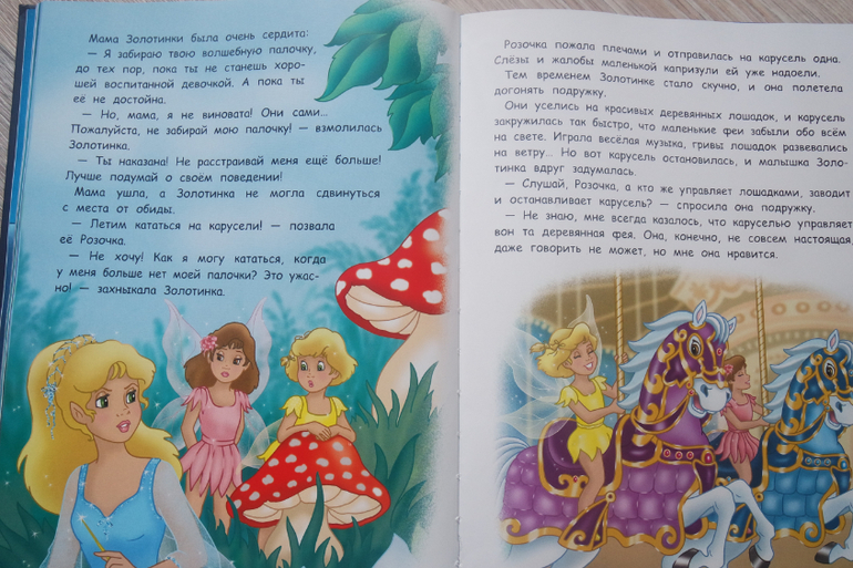Наконец- то я купила обожаемую книгу . Очень мне было жалко денег на книгу, которую можео взять в библиотеке, но дочь просила...Теперь этот шедевр стоит на полке в книжном шкафу и старшая дочка сама читает ( иммитует чтение, перессказывает)сказки младшим сестрам и кукле)