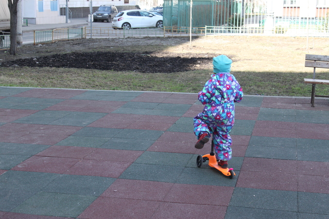 Вот уже вторую неделю ходим гулять с самокатом. Сначала Даша каталась не уверенно, все время уезжала на лево, хорошо получалось ездить только по кругу. Но с каждым днем ездила все лучше и вот сегодня после занятий она уже гоняла очень уверенно. Очень рада что самокат оправдал наши ожидания!