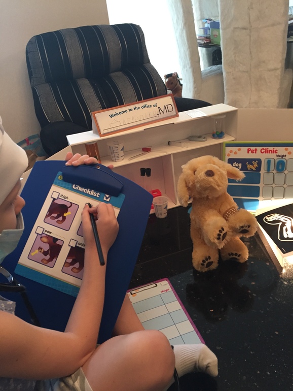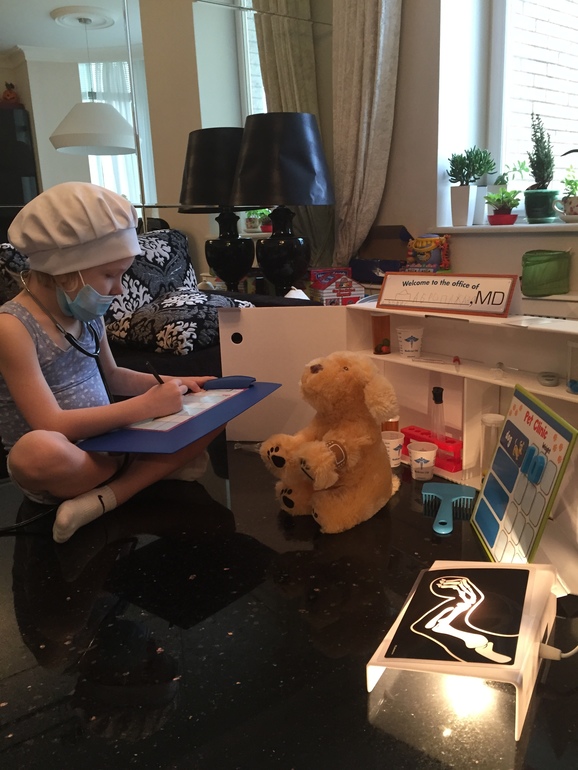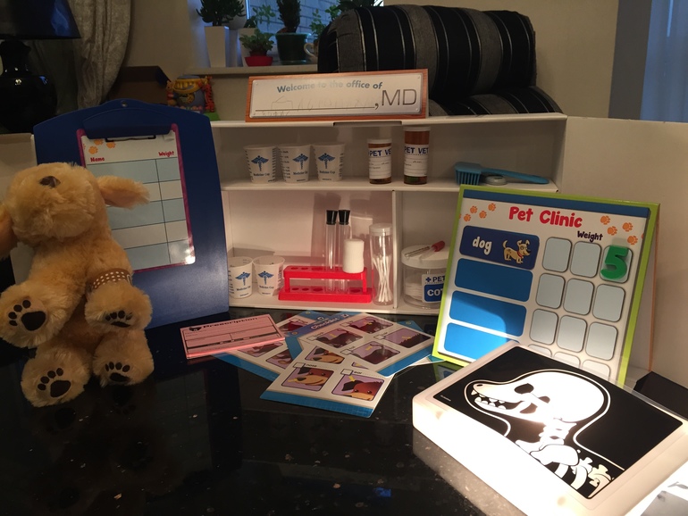 Мои детки любят плюшевые игрушки, мы часто вовлекаем их в игры. Последнее время Степе полюбился щенок и я подумала, почему бы не рассказать ему о чудесной профессии. Покажу, как мы поиграли)