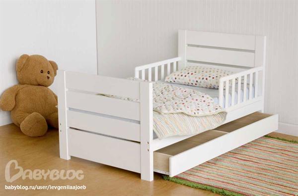 Младшая пока в детской, бортики пока очень спасают)). Думаю не раньше 3 перекладывать.