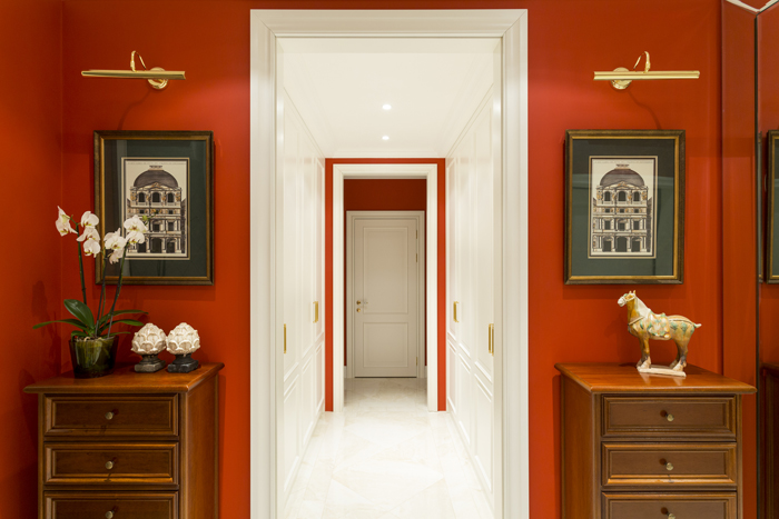Красный цвет в интерьере используется у нас не часто. Хотя значение его в русской культуре огромно. Красный для Евразии, это как черный для скандинавских стран. Поскольку мы привыкли избегать интенсивных цветов, расслабляясь в бежевом и сером, красному досталась роль акцента. Покрасить стену красным - из области эпатажа.