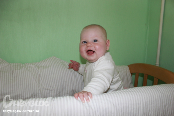 Поздавляем вас с полугодием! Уже так классно на ножках стоит, быстрая девчуля! Ну и конечно невозможно не отметить ваши сладкие-пресладкие щёчки! =)