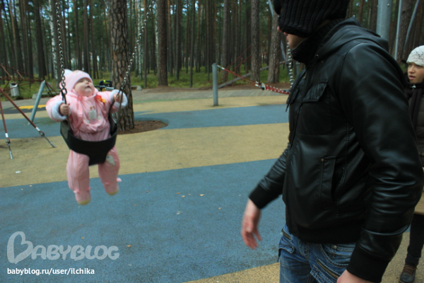 Это уже деть на качелях катается, это уже под конец ей надоело. а так она смеялась на всю площадку