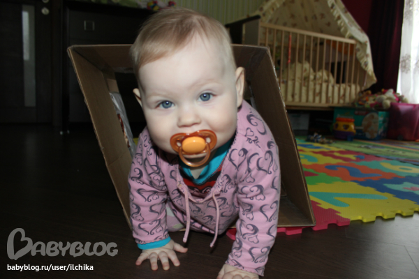 А вот теперь новая игрушка. Кробка - тунель! Теперь ползает туда сюда. А это коробка кокраз из под посылки которая пришла из англии :)