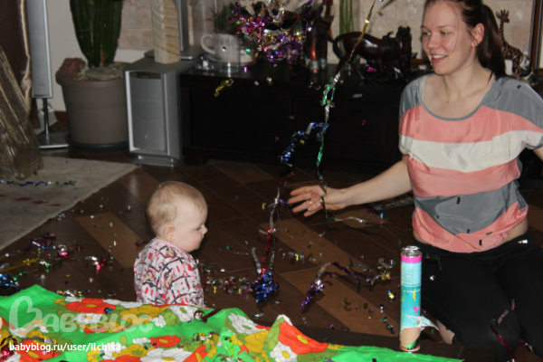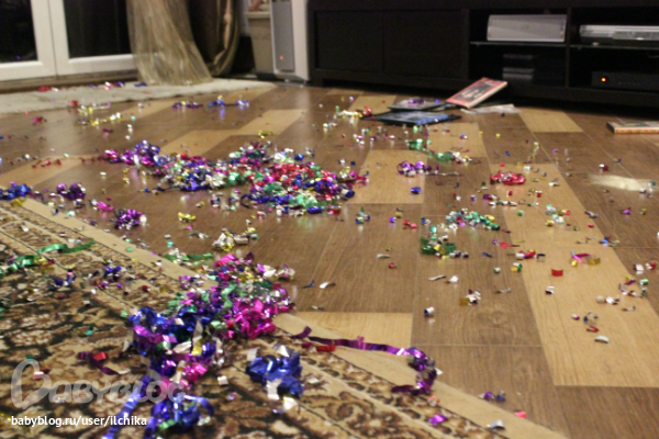 мы взорвали хлопушки и весь пол был усыпан ленточками. Вот веронике счастья было. Ребенку такое удовольтвие что ее не было видно и слышно на протяжении часа.