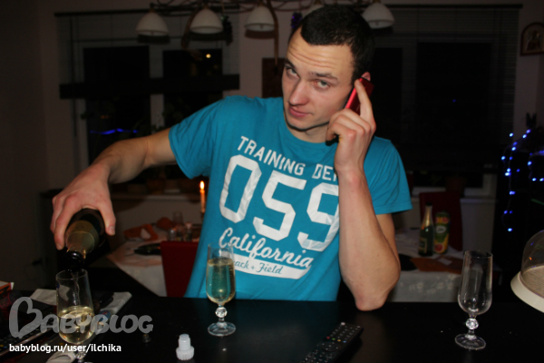 МамулиноНаш папа вернулся с работы только в пол 11ого вечера.До этого мы с родителями встретили российский новый год, послушали речь Путина. Этот Новый год впервые был таким простым, раньше наша семья праздновала на широкую ногу. Новогоднего настроения почти не было, т.к. снег уже весь расстаял, сегодня +5.Стол шикарный мы не делали, я даже не принаредилась к столу.Я сделал слоеный слатик "белая ночь" и рулетики из семги с сливочны сыром, а мама запекла курицу в духовке с картошкой и конечно же ОЛИВЬЕ!Были бутики с икрой,рыбная плата, оливки,сыры и потом мы кушали тортик.